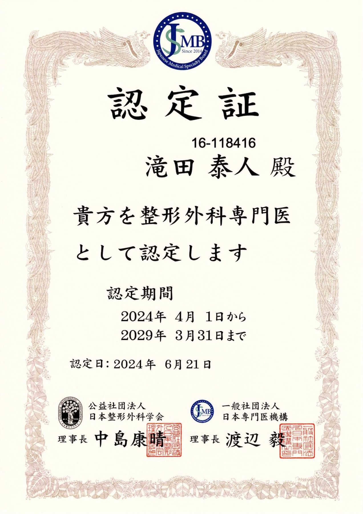取得している専門医・認定医の認定証を掲載しています(PCではクリックで拡大表示できます)。